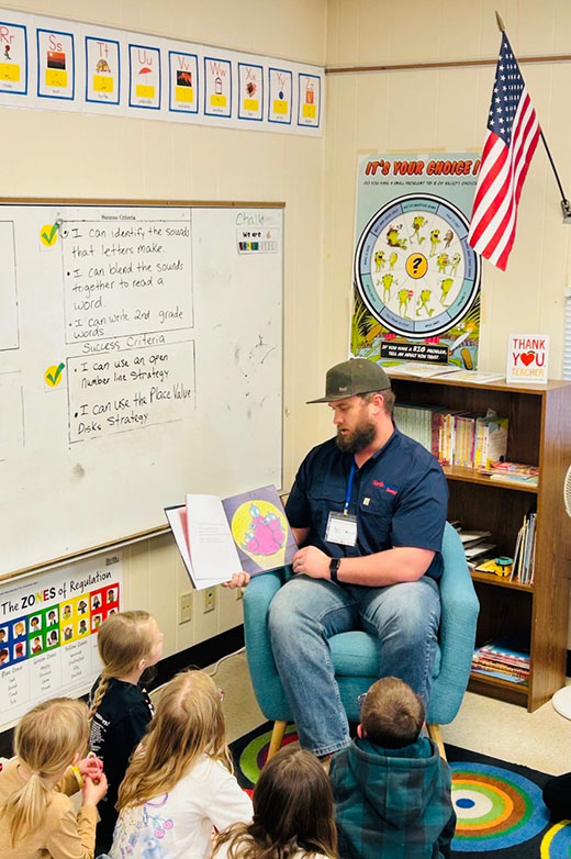 As part of the event, NorthWestern Energy’s Cody Lux and Tanner Emerick volunteered time to read to second‑grade students. Reading plays a critical role in developing language skills, strengthening brain function, and sparking curiosity and imagination in young learners.